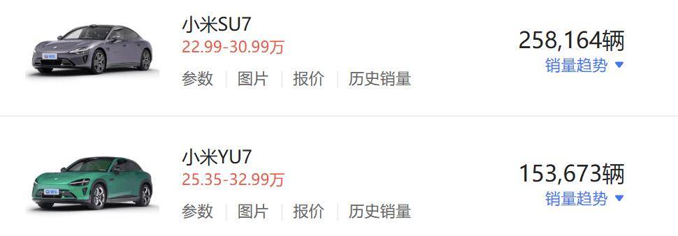 2025年小米汽车能够实现高速增长,得益于小米YU7的上市。小米YU7上市后曾在8至11月连续4个月成为中大型SUV销量榜销量第一名,零售销量分别为1.65万辆、2.24万辆、3.37万辆、3.37万辆。1月1日,雷军也曾表示,小米YU7上市6个月累计交付已超15万辆,是小米SU7同期2.3倍。
