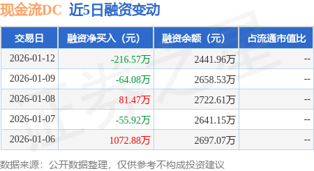 证券之星消息,1月12日,现金流DC(159235)融资买入316.59万元,融资偿还533.16万元,融资净卖出216.57万元,融资余额2441.96万元。