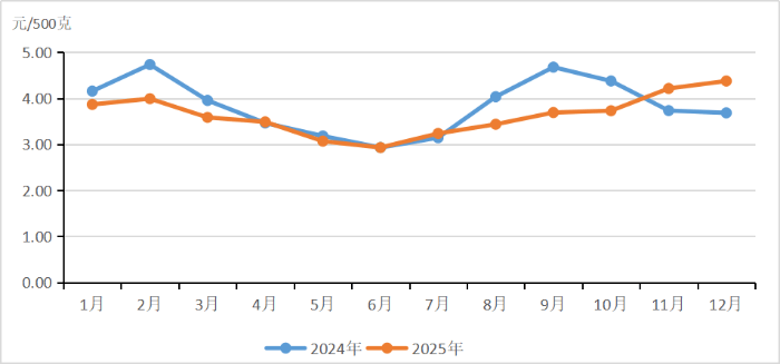 (一)蔬菜价格呈季节性波动走势,均价同比下降