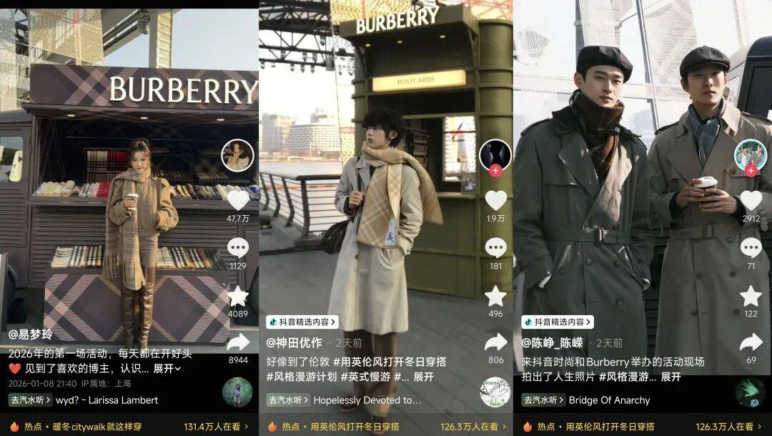 也是在 @易梦玲、@神田优作、@陈峥_陈嵘等抖音时尚创作者的日常化演绎下,不仅活动成功出圈,还带动了线上线下用户对Burberry的兴趣关注。
