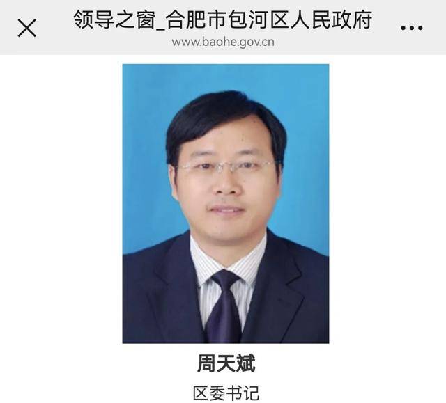 合肥市包河区人民政府网站“领导之窗”一栏近日更新后显示,周天斌已任包河区委书记。