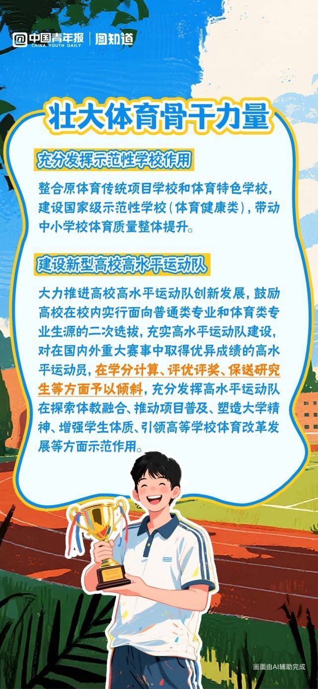 中小学生每天综合体育活动时间不低于2小时,高校可探索在学生毕业前颁发体质健康证书……近日,教育部、国家发展改革委、财政部、人力资源社会保障部、体育总局等五部门联合印发了《关于实施学生体质强健计划的意见》,提出八个方面重点任务。读图划重点。