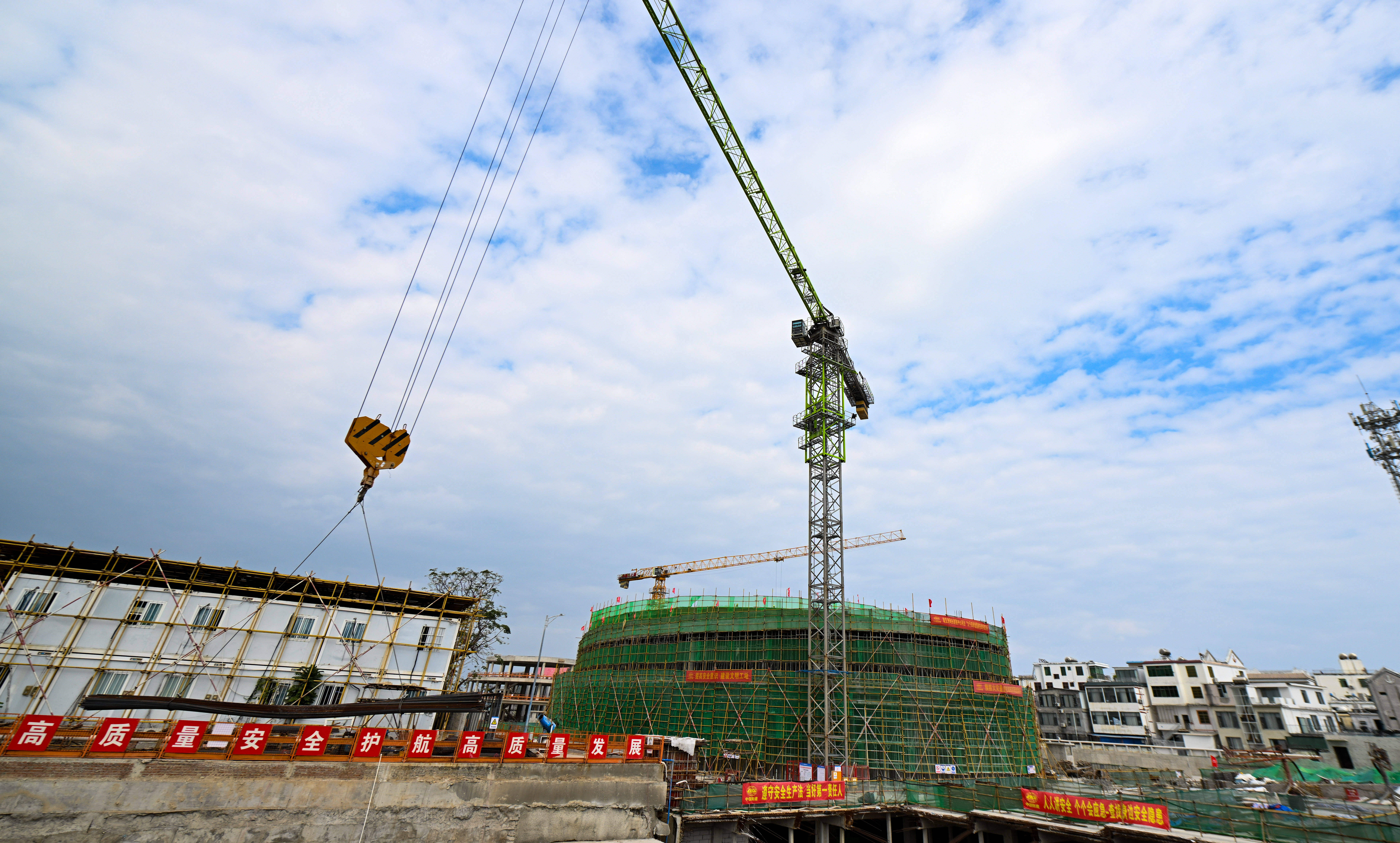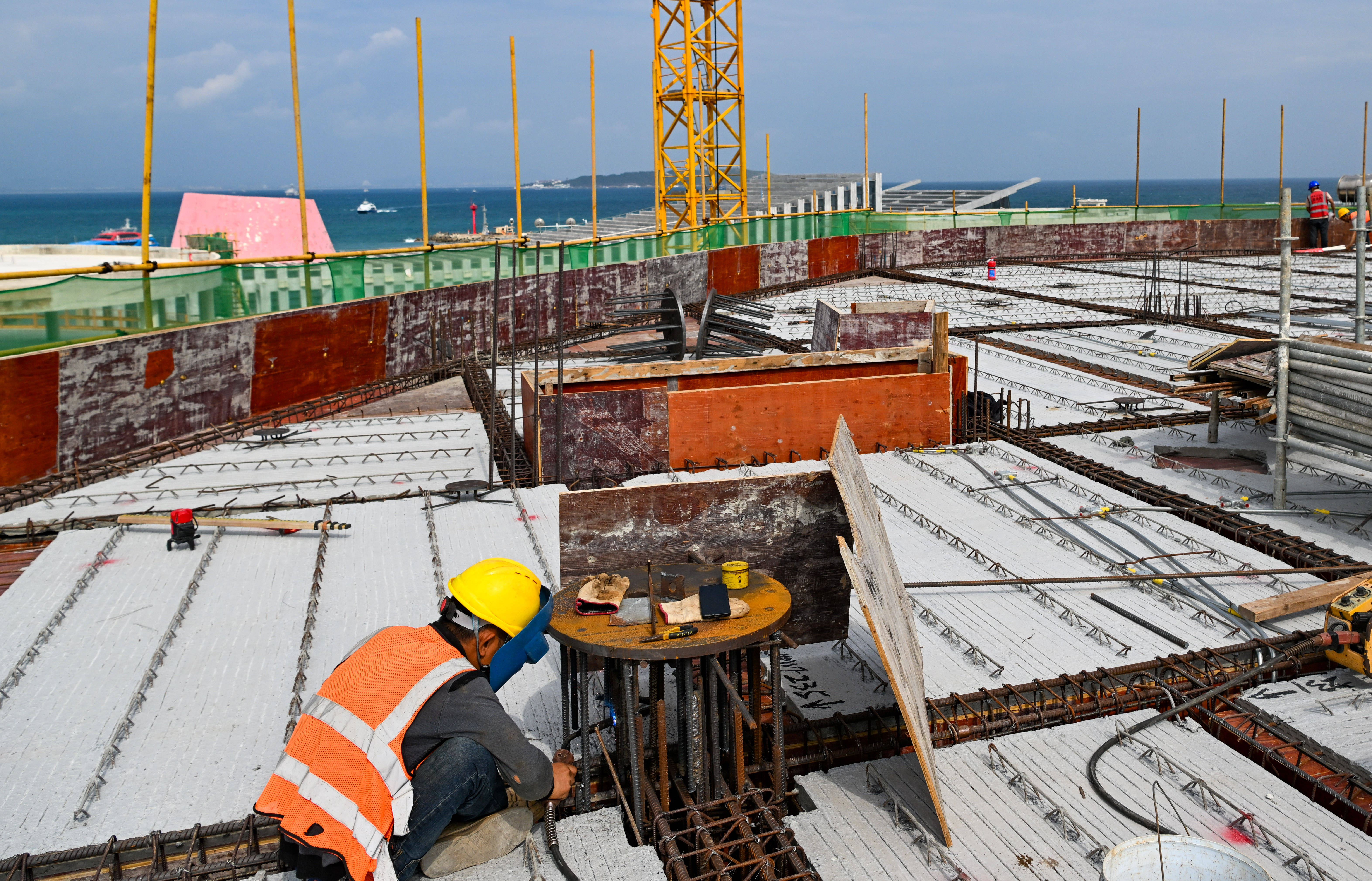 1月20日,工人在位于海南省三亚市海棠区的蜈支洲岛旅游区配套工程现场施工。 新华社记者 杨冠宇 摄