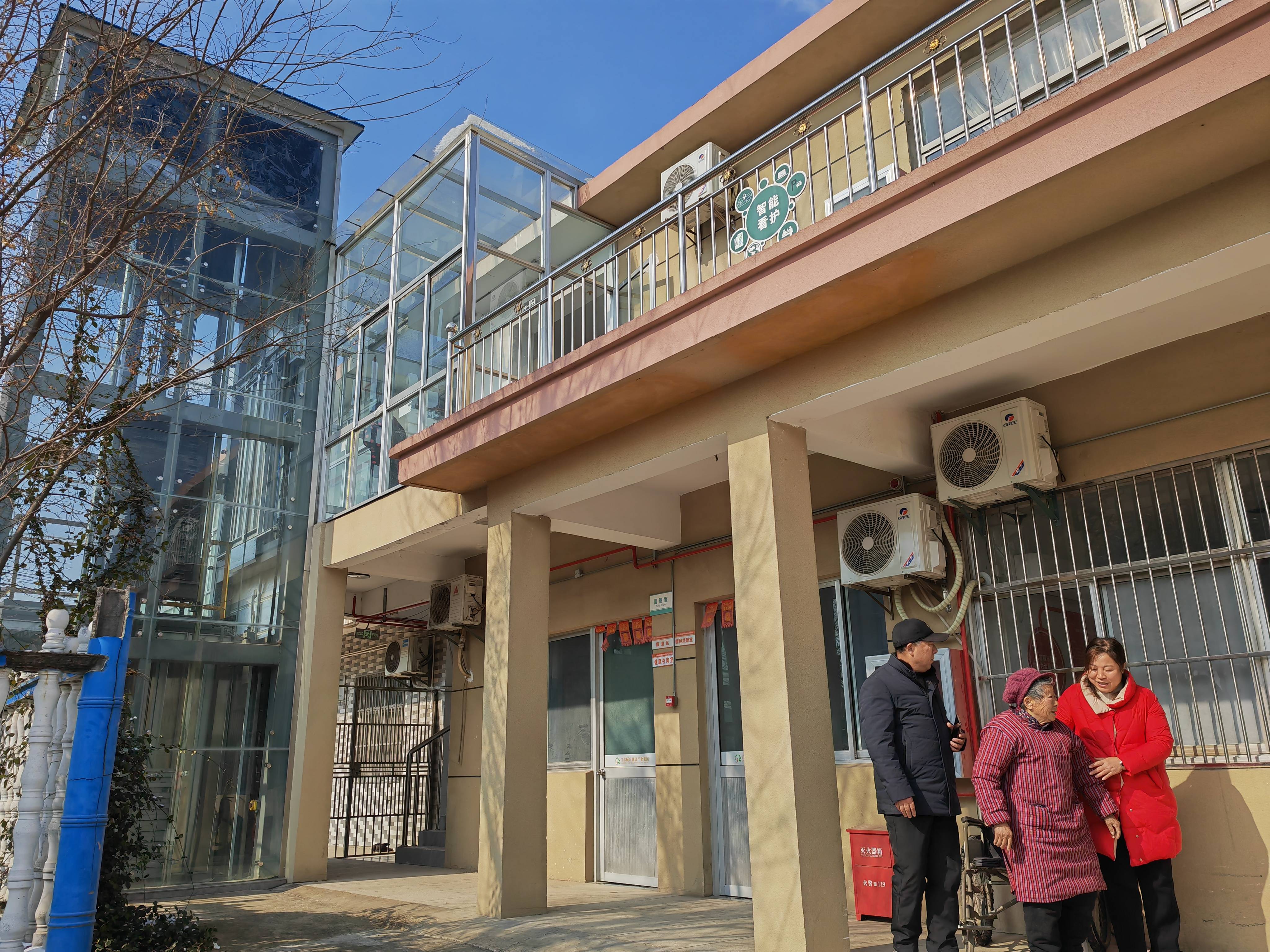 1月21日上午,记者在江苏省如皋市磨头镇,见到了这个只有两层楼却依然安装了电梯的高李村互助养老睦邻点。睦邻点负责人彭建军介绍说,这个睦邻点是由原村委会办公楼改造而来,在室外加装电梯,就是为了方便老人上下楼。“隔壁就是村卫生室,村医每周都会过来给老人量血压、测血糖。老人有个头疼脑热,看病都很方便。”