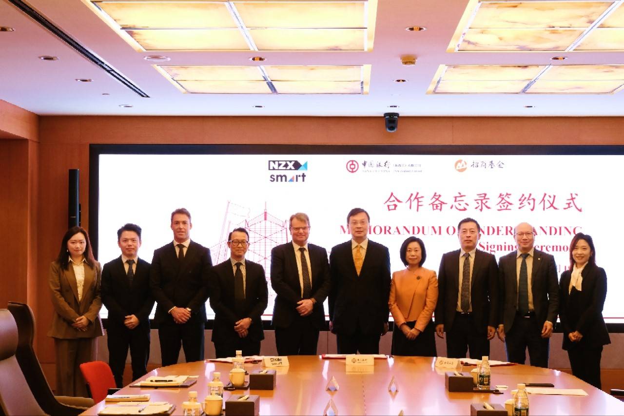 2025年11月19日,招商基金在新西兰证券交易所及中国银行总行的见证下,与新西兰证券交易所旗下的基金公司Smart及中国银行新西兰子行在北京签署合作备忘录,将进一步合作推进中新资本市场联通融合。