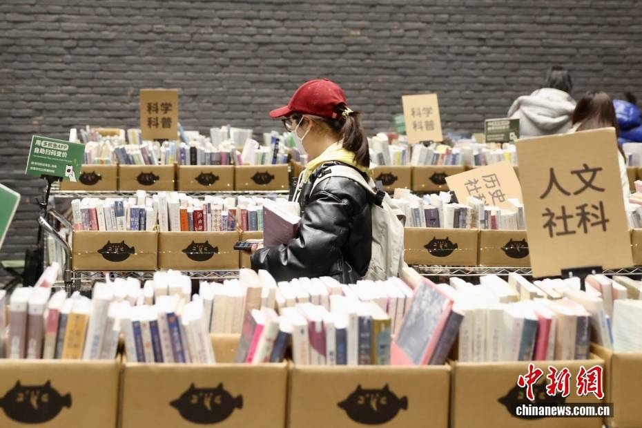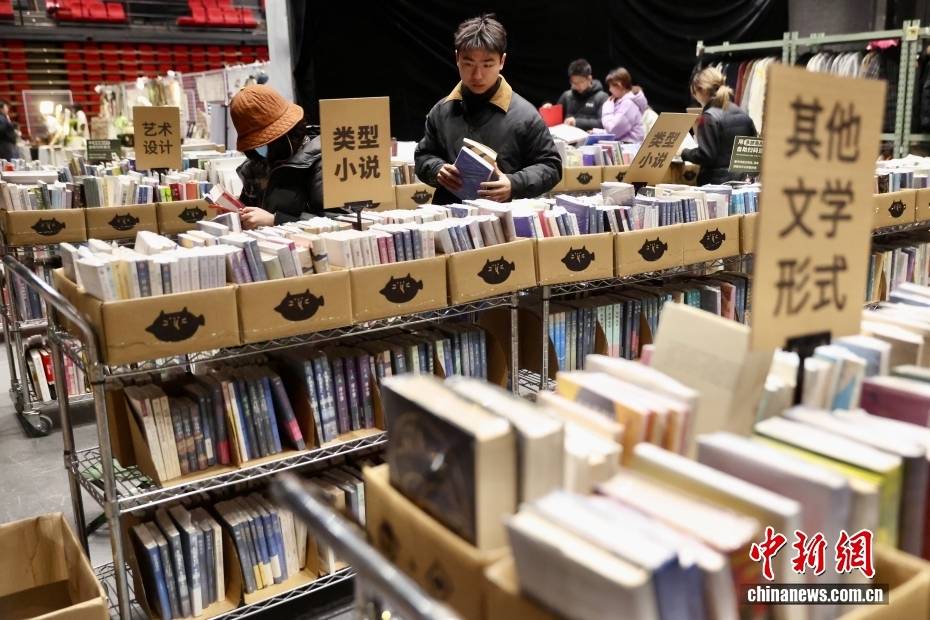 1月22日,市民在北京朗园Vintage多抓鱼二手市集选购旧书。近年来,二手经济的发展带动新消费,许多消费者开始追求更具理性与可持续性的消费方式。中新社记者 易海菲 摄