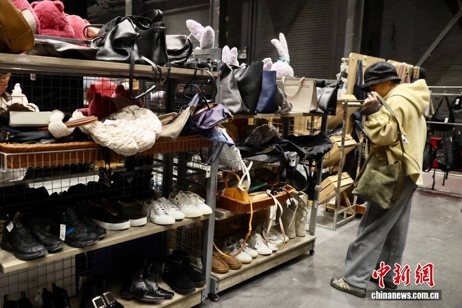 1月22日,市民在北京朗园Vintage多抓鱼二手市集选购旧包。近年来,二手经济的发展带动新消费,许多消费者开始追求更具理性与可持续性的消费方式。中新社记者 易海菲 摄
