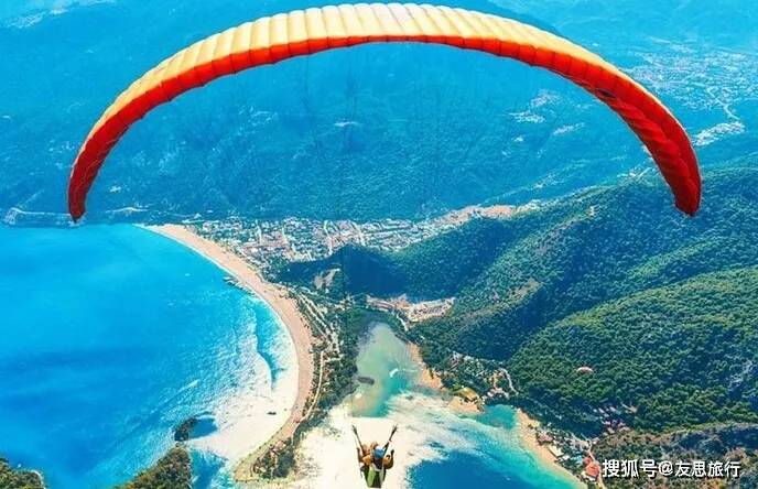 费特希耶的死海滑翔伞,从厄吕代尼兹起飞,翱翔于天空中,可以清晰的看清脚下心形的海湾和渐变色的蓝海。
