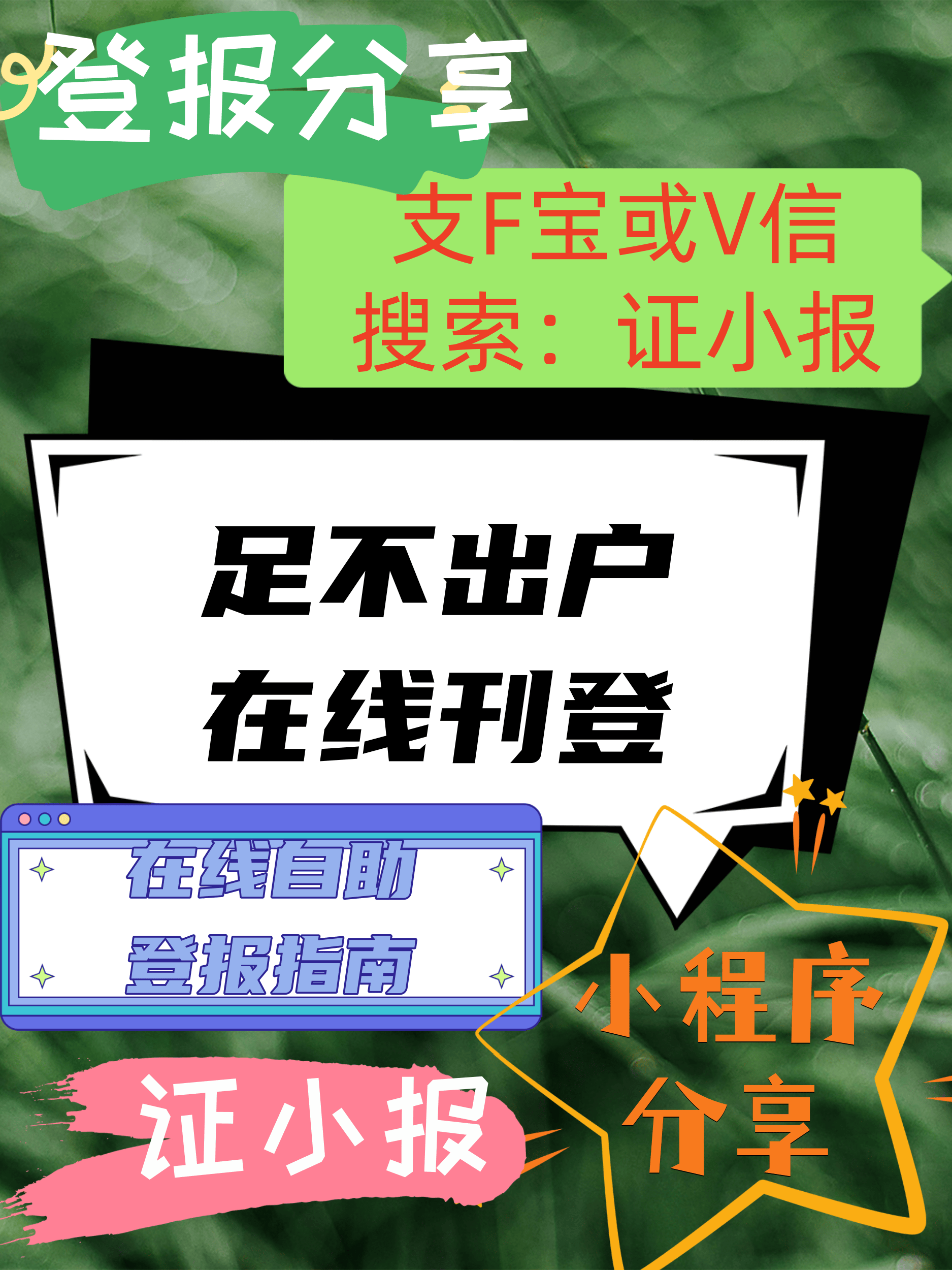 随着科技发展,现在有了更加便捷的解决方案——支付宝或微信搜索【证小报】小程序自助登报,让您足不出户就能完成整个登报流程。
