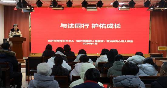 鲁网1月23日讯 为了给正在康复路上的青少年及其家庭提供更立体、更坚实的支持,帮助他们增强自我保护意识,筑牢安全防线,1月20日,临沂市精神卫生中心举办“与法同行 护佑成长”普法教育心理大课堂。本次活动特邀临沂市中级人民法院刑三庭副庭长、四级高级法官高德玲现场授课,青少年及其家长共计70余人参与。活动由医院党委委员、副主任苏颖主持。