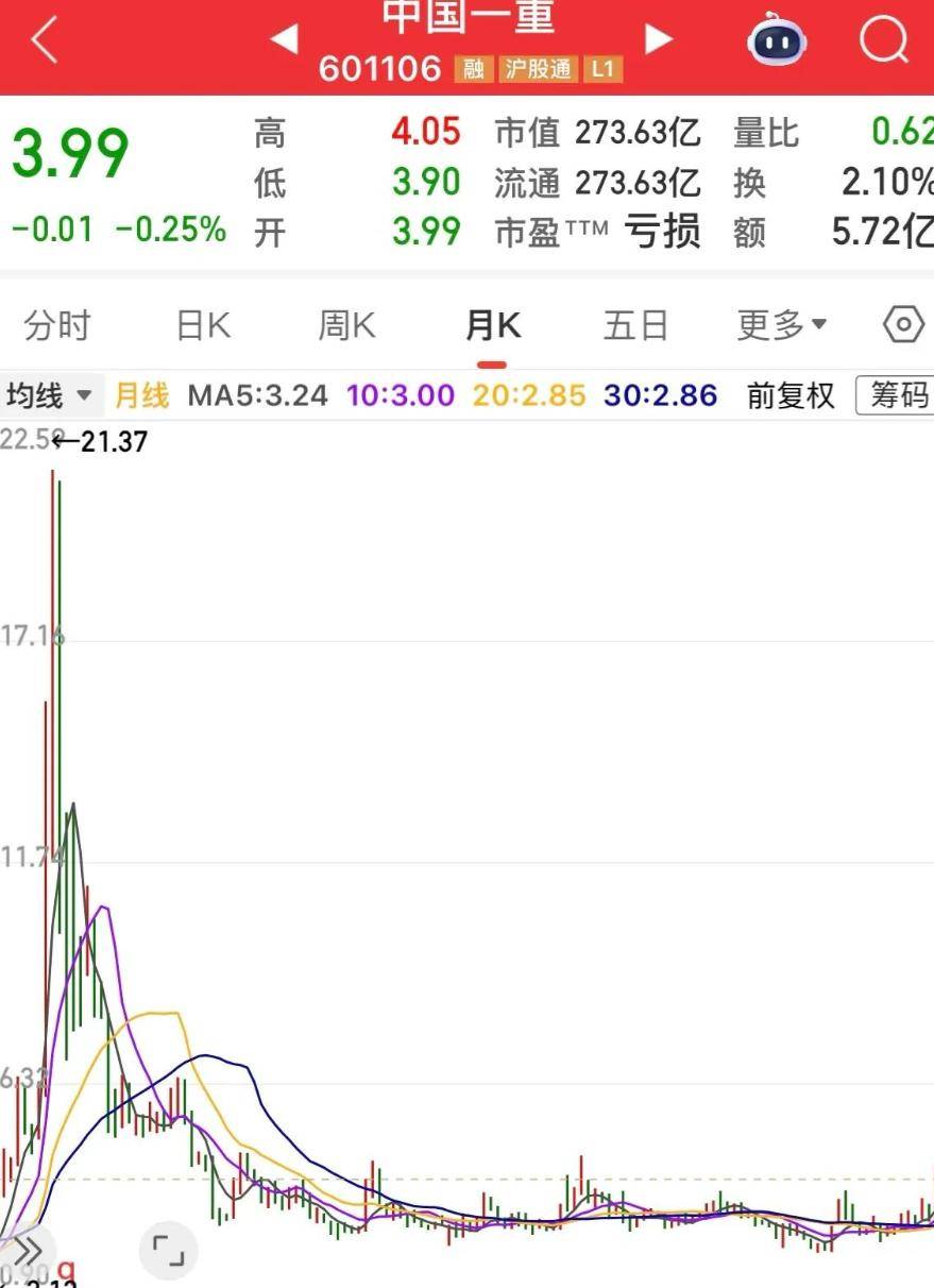中国一重的走势更加极端,从21.37元跌至3.99元,跌幅深达85%,它是这些“中字头”股票中反弹最微弱的一只。 3元左右的横盘,已经持续了七年多。 2024年,公司年报巨亏37.36亿元,尽管2025年三季报亏损收窄至7860万,但股价依旧在低位徘徊。 它的股东人数为22.31万,同比下降了4.55%,数据显示,一部分试图抄底的投资者最终选择了止损离场。