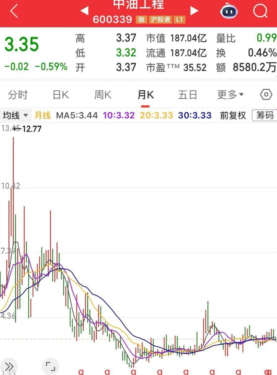 横盘,是这批股票的共同关键词。 中油工程,股价在3元左右横盘超过了六年。 中国中铁,股价在5到6元的狭窄区间内,已经横盘了九年。 中国中冶,在目前价位横盘了六年。 中国铁物,在2到3元之间,同样横盘了六年。 漫长的横盘消耗着投资者的耐心和信心。 中油工程的股东人数下降了13.62%,中冶的股东人数下降了9.46%。 公告里常用的表述是“部分投资者止损出局”。
