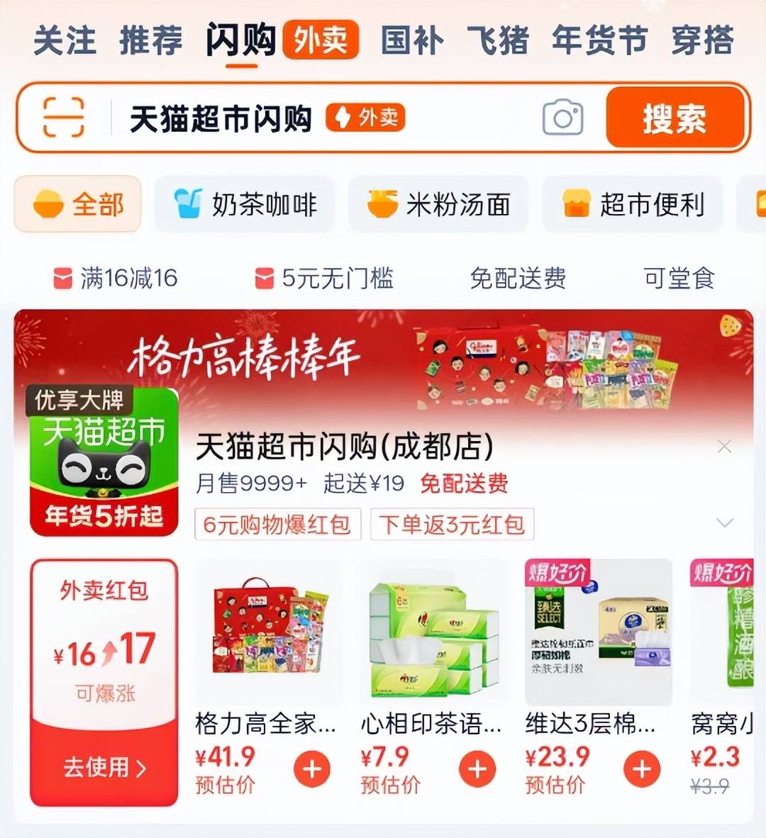 去年底多方媒体报到,菜鸟联手天猫超市持续加码淘宝闪购服务。预计到 1 月底,菜鸟通过在全国多城新开、增开天猫超市闪购仓,助力天猫超市在全国 31 城淘宝闪购端服务实现全面提速,最快 4 小时达。包括去年双 11,已接入淘宝闪购的天猫超市也有参与。
