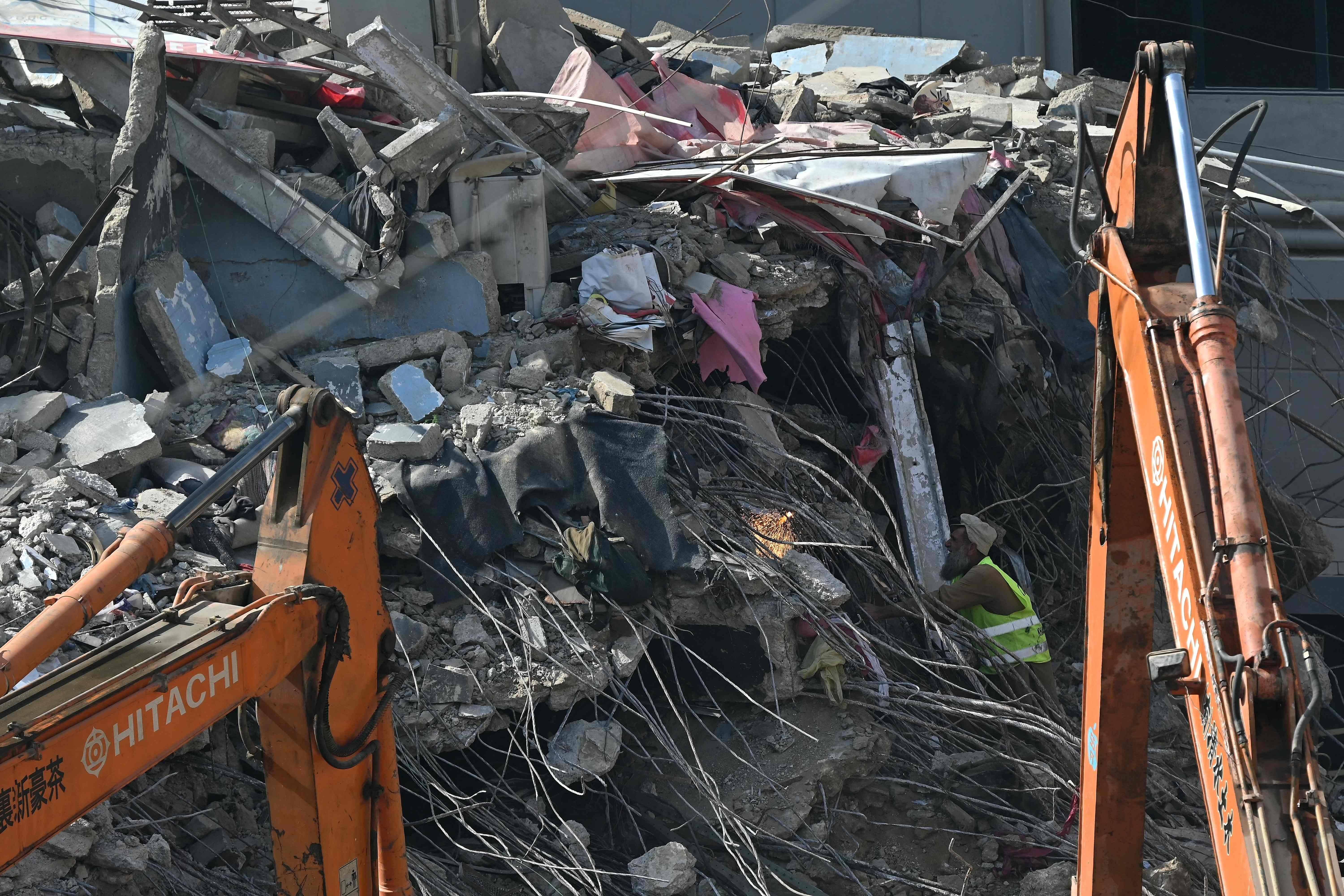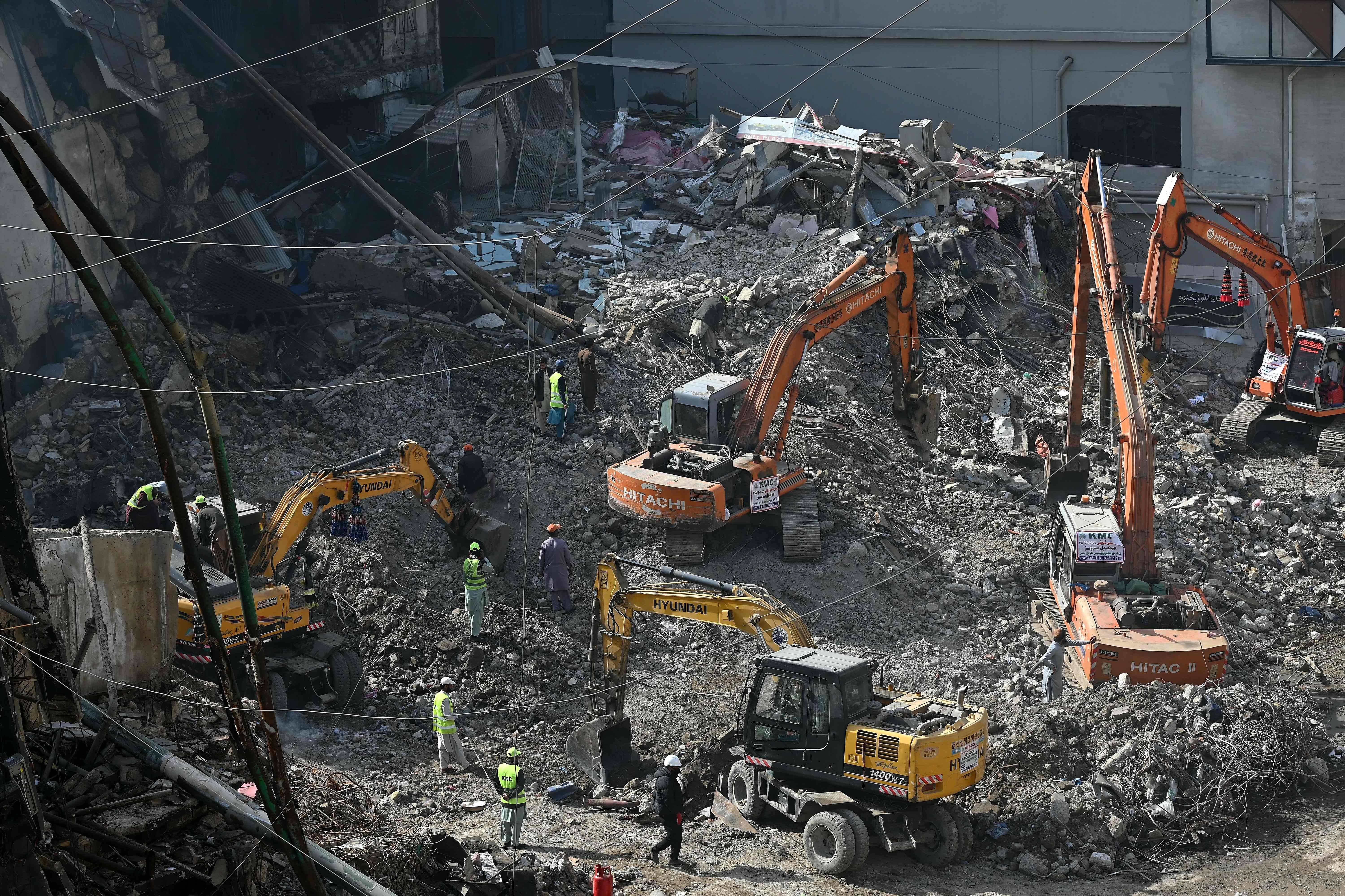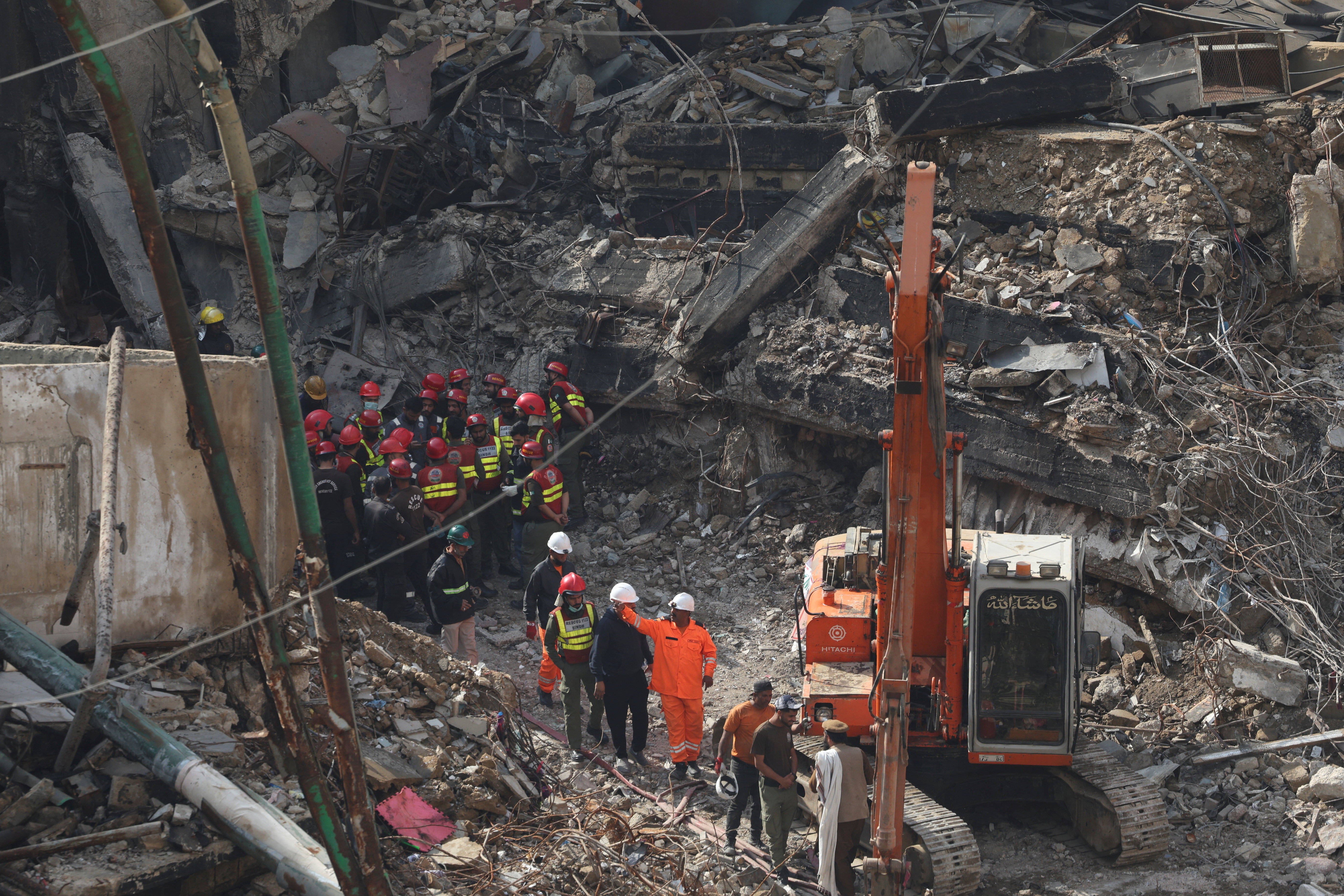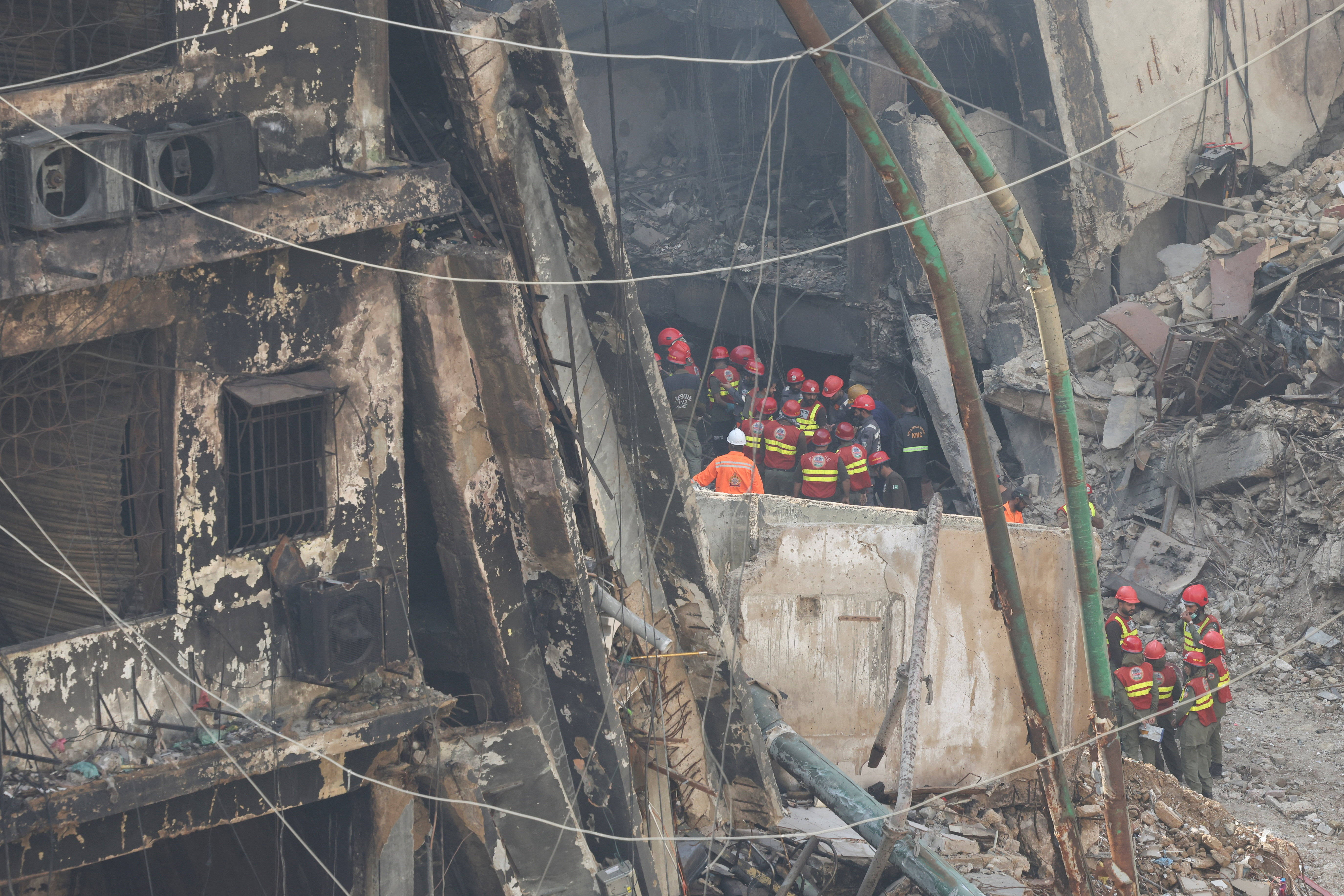 1月22日,救援人员在巴基斯坦卡拉奇的火灾现场工作。 新华社/法新