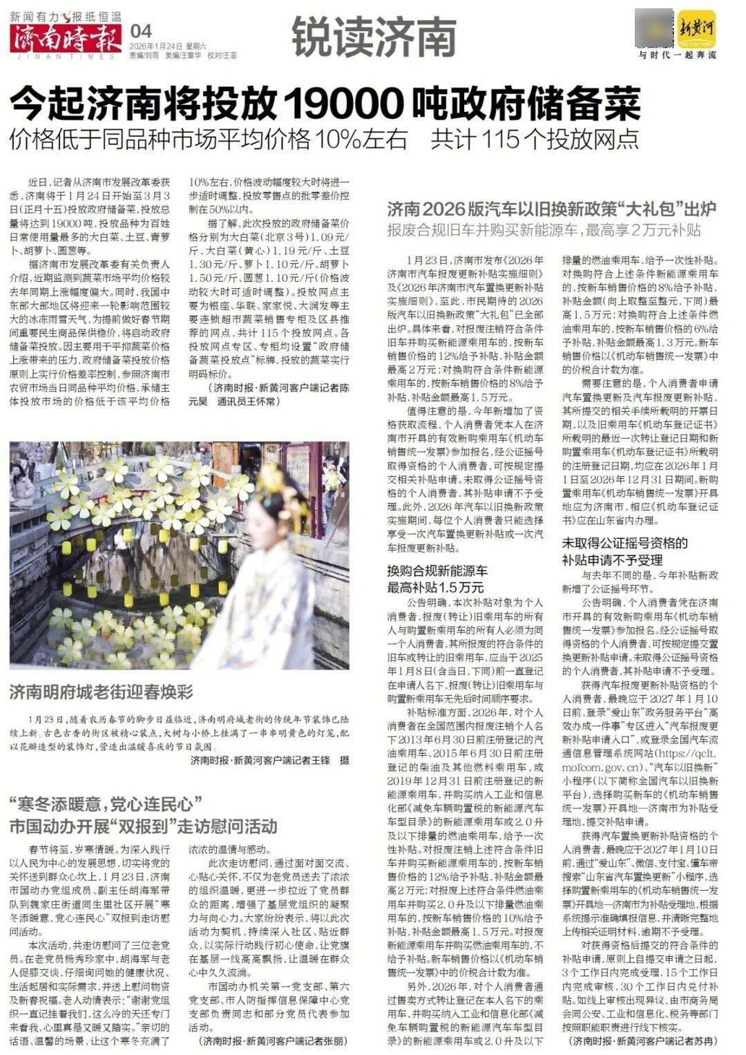 近日,新黄河客户端记者从济南市发展改革委获悉,济南将于1月24日开始至3月3日(正月十五)投放政府储备菜,投放总量将达到19000吨,投放品种为百姓日常使用量最多的大白菜、土豆、青萝卜、胡萝卜、圆葱等。