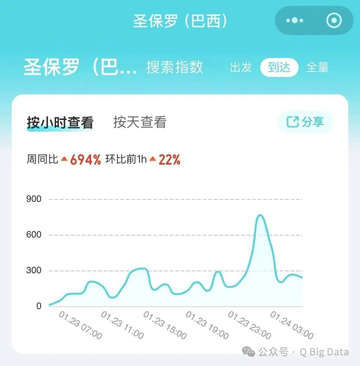 里约热内卢搜索量环比上一小时增27%,其中,北京、上海、广州、杭州、深圳是搜索热度最高的5个出发地。