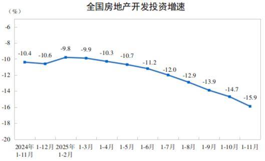 1—11月份,全国房地产开发投资78591亿元,同比下降15.9%。