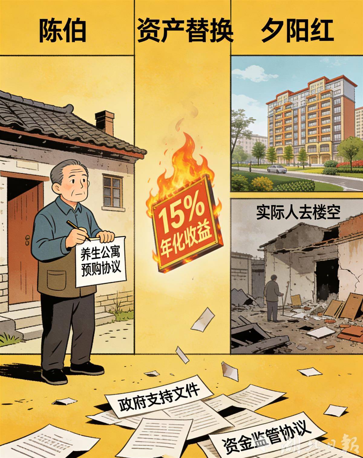 陈伯心动了。他有一套老房子空置,子女都在外地,正发愁将来的养老问题。在公司的豪华展厅里,他看到了“政府支持文件展示墙”“战略合作伙伴授权书”,还有与某知名保险公司合作的“资金监管协议”。