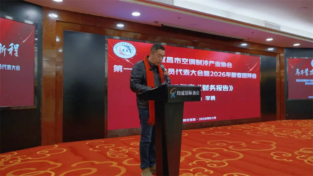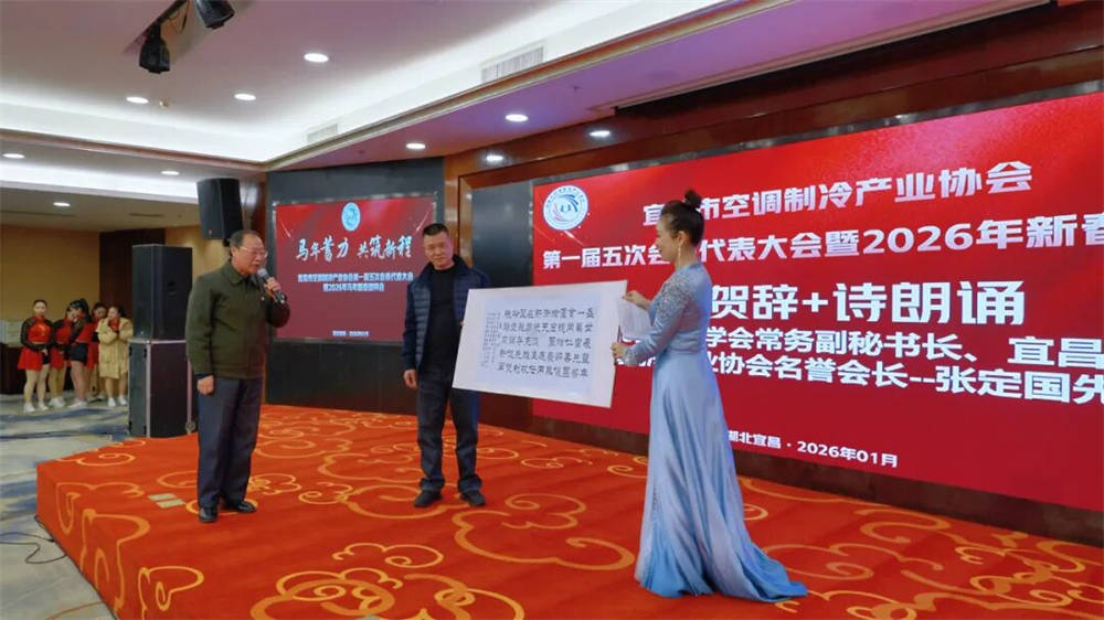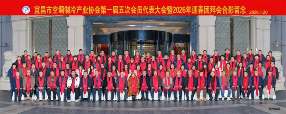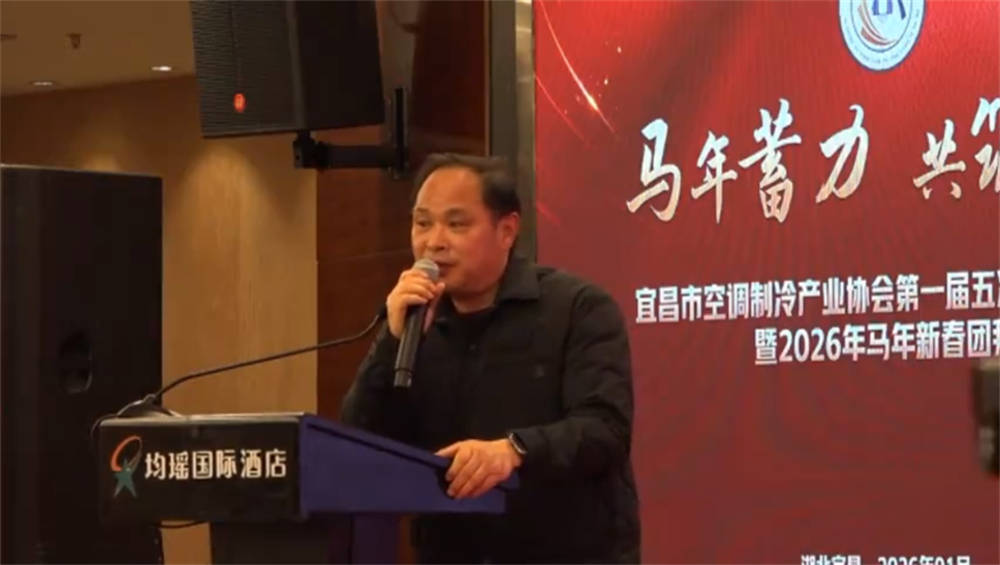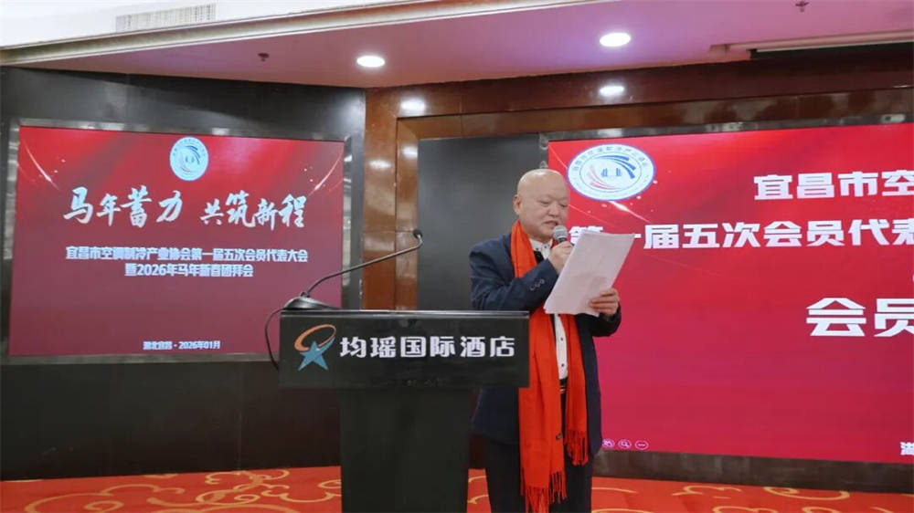 2026年1月20日,一场纷扬而至的瑞雪悄然装点了宜昌的街巷——这是多年难遇的冬之馈赠,整座城市银装素裹,处处透着洁净与祥瑞。尽管寒意袭人,却丝毫没有减退行业人相聚的热情。在湖北省宜昌市均瑶国际酒店五楼的白玉兰厅内,宜昌市空调制冷产业协会第一届五次会员代表大会暨马年新春团拜会正热烈召开。大会以“马年蓄力共筑新程”为主题,在雪映灯辉的温馨氛围中拉开帷幕,现场暖意融融,宜昌市空调制冷产业协会全体会员单位代表、理事及特邀嘉宾,宜昌市工商联党组成员副主席胡文雄,湖北省家电协会、省空调工程施工行业协会、省空气净化协会、省制冷学会及兄弟市州行业组织代表,以及来自产业链上下游企业、科研院校的专家学者近200人欢聚一堂,共同回顾2025年行业发展历程,展望技术创新趋势,深化产业协同合作,共庆马年新春。此次盛会不仅是对协会过去一年工作的系统梳理与总结,更是宜昌空调制冷产业凝聚行业智慧、积蓄前行力量的关键契机。在瑞雪兆丰年的吉庆寓意中,活动不仅搭建起一个高效务实的交流平台,更凝聚了合作共赢的广泛共识,为马年新征程注入了满满信心与融融暖意。