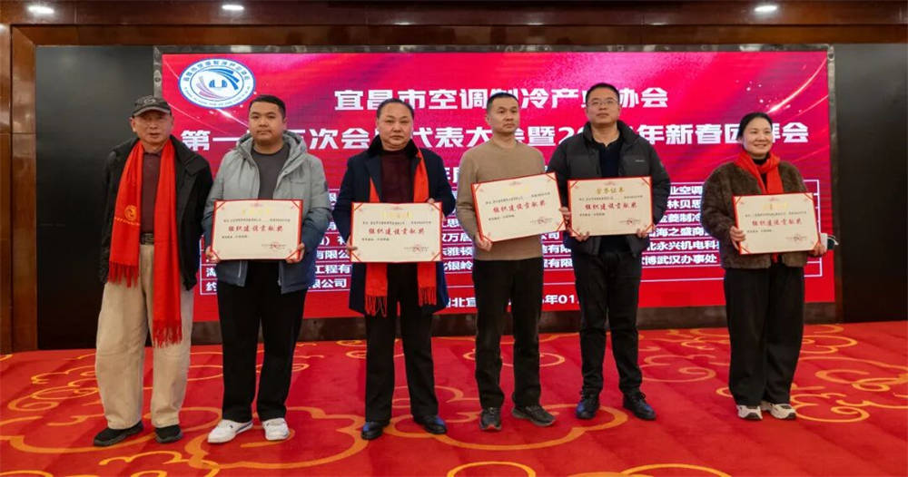 晚会举行了新会员授牌仪式,欢迎宜昌海之盛商贸有限公司、宜昌迅捷机电设备销售有限公司、宜昌荣辰制冷有限公司、南京天加贸易有限公司武汉分公司、宜昌圣火暖通科技有限公司、宜昌广志机电设备销售有限公司、宜昌润凯健康科技有限公司等七家单位加入协会大家庭。同时,大会颁发了2025年度组织建设贡献奖、组织建设先进单位、优秀单位等奖项,表彰对协会发展作出突出贡献的会员企业。