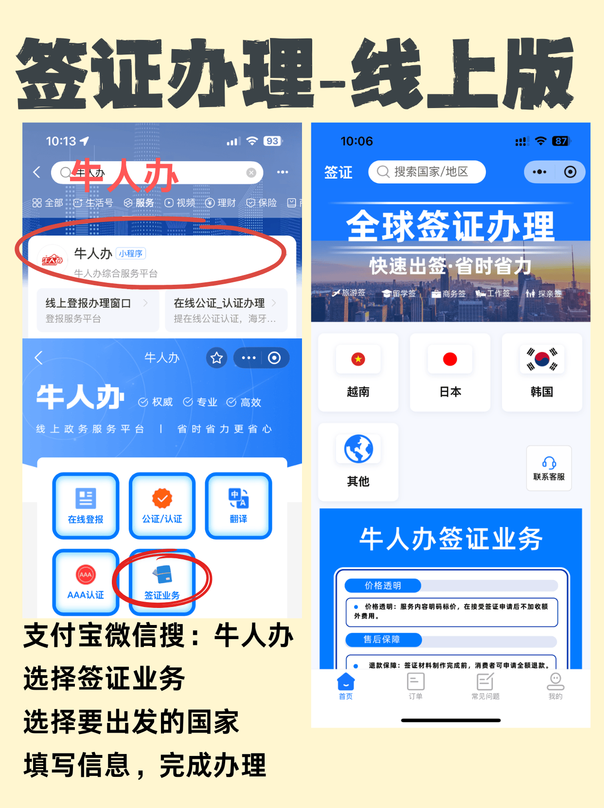 过去,办签证总得跑大使馆或中介,费时费力。但现在,随着科技发展,线上办理成了主流方式。这种方式不仅节省时间,还能随时随地提交申请,跟踪进度。例如,通过支付宝搜索“牛人办”小程序可以线上自助办理,整个过程像网购一样简单。线上平台通常提供清晰的指引,帮助你自动检查材料,减少错误。选择线上办理,能让你的签证申请更高效,尤其适合忙碌的现代生活。