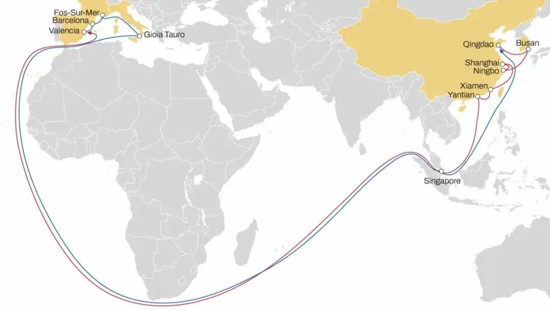 JADE航线也同步升级,新增法国福斯(Fos-sur-Mer)为直靠港,运输时间缩短约7天。