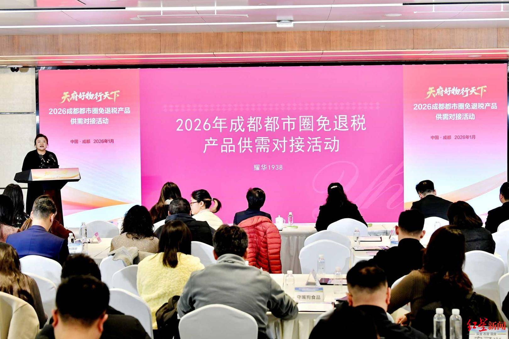 1月26日,成都市商务局会同市级相关部门及各区(市)县商务主管部门,举办“2026成都都市圈免退税产品供需对接会”,以搭建产销桥梁,实现资源互补。