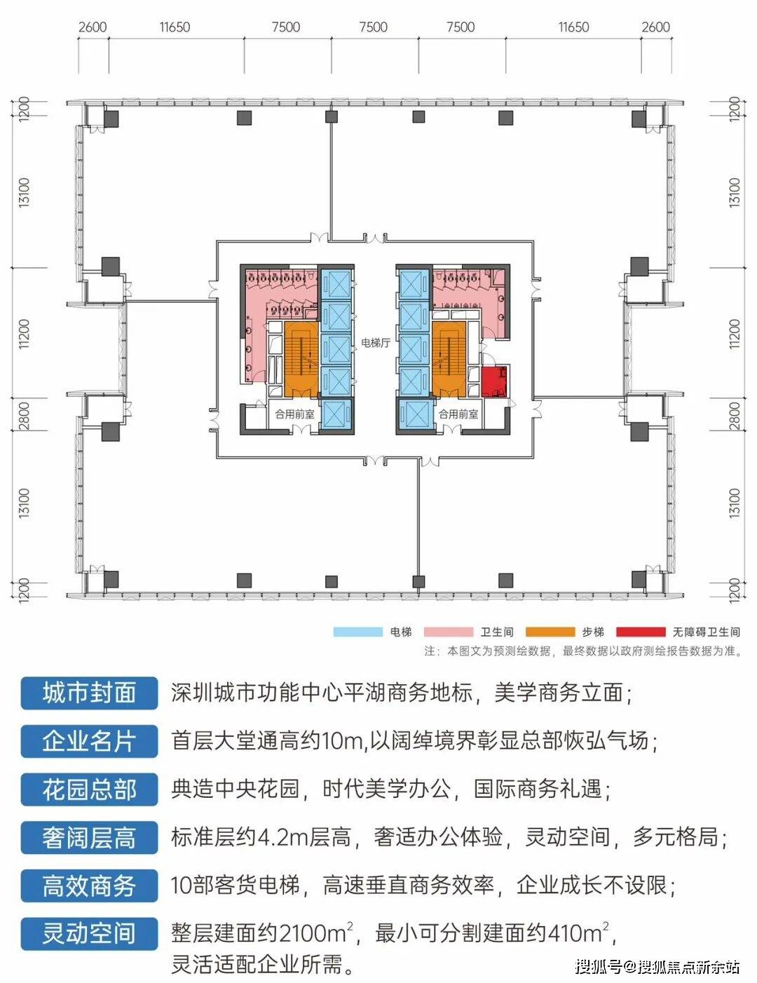 层高:首层大堂通高约10m,标准层层高约4.2m;