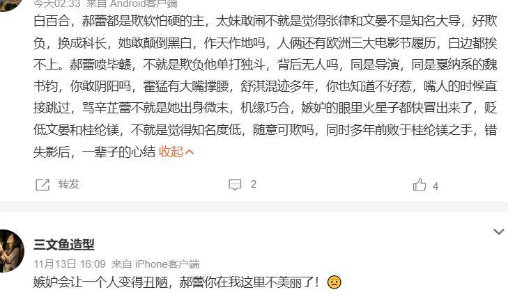 网友因此质疑郝蕾对自己看的太高,自己还没在圈内混出名堂,就已经开始内涵同行。