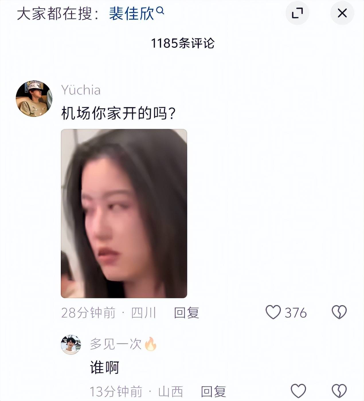 裴佳欣最近行走机场时,因为一个眼神惹来不少网友的质疑。