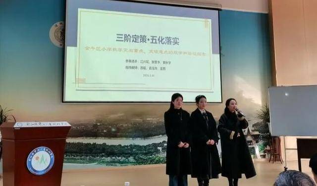 在总结颁奖会上,金牛小数团队进行了专题展示。三位教师以“三阶定策 五化落实——金牛区小学数学突出重点、突破难点的路径探索”为主题,进行了结构化、可操作的实践分享。江兴花老师对重难点的学理内涵展开剖析,张警予老师系统阐述区域教研形成的“三阶五化”教学模式,黄秋宇老师则结合图形与几何领域展示针对性突破策略。整个分享内容扎实、逻辑清晰,不仅体现了教师个人素养,更是金牛区教科院聚焦课堂、深耕教研的成果缩影。