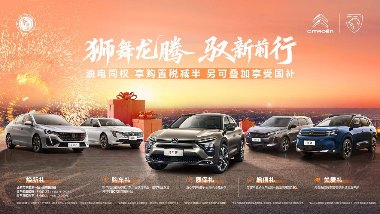 同时,东风标致和东风雪铁龙也为购车用户准备了“油电同权 享购置税减半 另可叠加享受国补”政策及一系列新春购车礼遇,以切实优惠响应市场需求,助力消费者新年换新车。本次推出的购车权益涵盖多方面,有焕新礼:全系可享国家补贴 焕新更超值,旧车报废换新:补贴10%(不超过15000元),旧车置换新车:补贴6%(不超过13000元);购车礼:新年购买东风标致、东风雪铁龙全系车型,直享现金优惠及另畅享50%购置税补贴;质保礼:五星守护加码—发动机终身质保承诺;增值礼:老客户置换旧车回购补贴至高增值15%;关爱礼:免费更换防冻液/空调系统清洗养护。