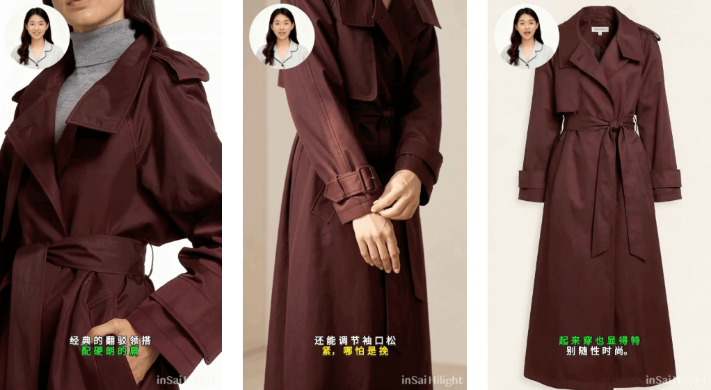 我们拿一件酒红色风衣做了测试,看到生成效果时确实被惊到了。