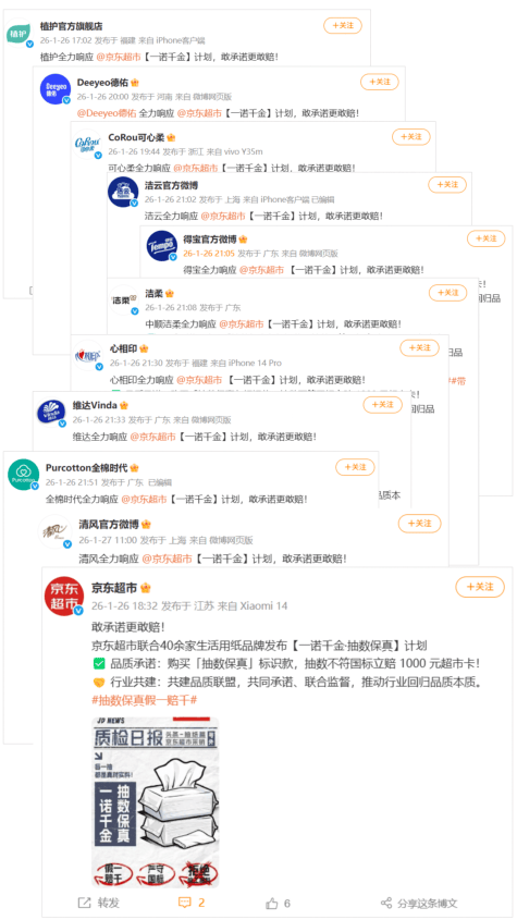 值得一提的是,京东超市与40余家生活品牌还计划成立“一诺千金”生活用纸品质联盟,旨在通过共同承诺、联合监督,推动行业回归品质本质。