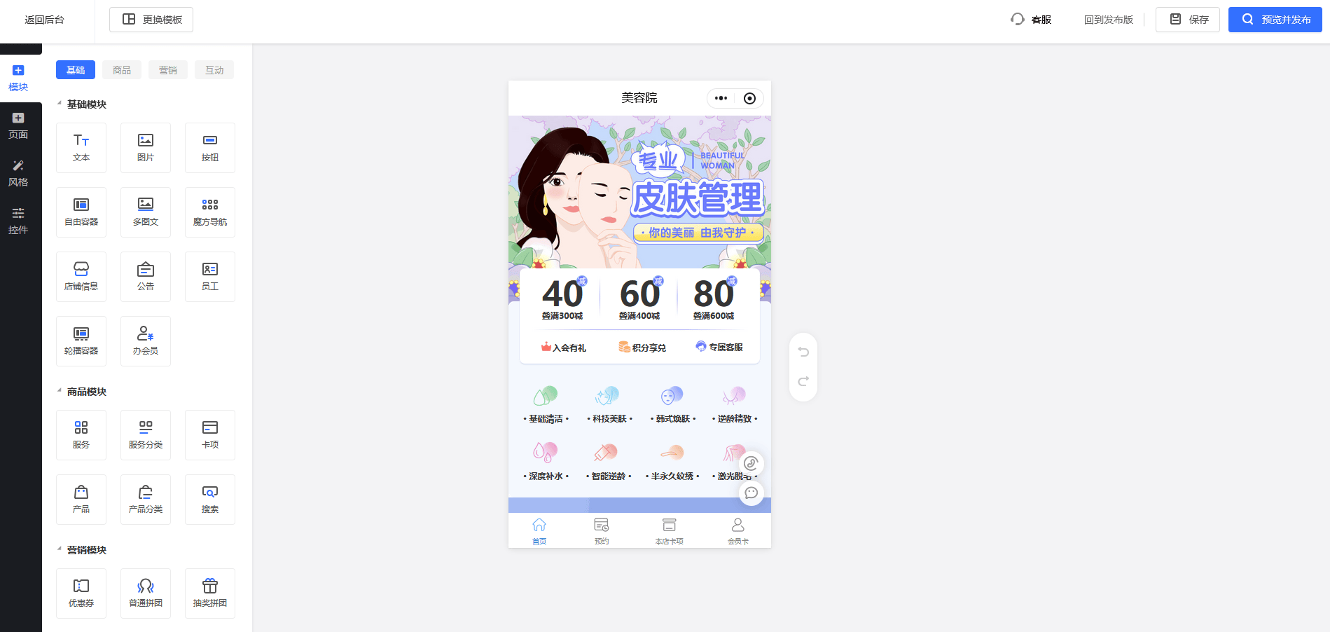 微盟的优势在于与微信生态的无缝衔接,其系统深度集成小程序商城、公众号菜单、企业微信社群等功能,可构建“线上预约-线下服务-离店复购”的完整私域链路。例如,门店可通过公众号推送个性化优惠券,引导客户进入小程序完成预约,服务后自动触发企业微信回访,形成闭环。此外,微盟提供丰富的行业模板,美业门店可快速搭建符合品牌调性的线上商城,降低设计门槛。