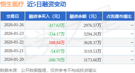 证券之星消息,1月26日,恒生医疗(159506)融资买入939.23万元,融资偿还1256.86万元,融资净卖出317.63万元,融资余额2976.57万元。