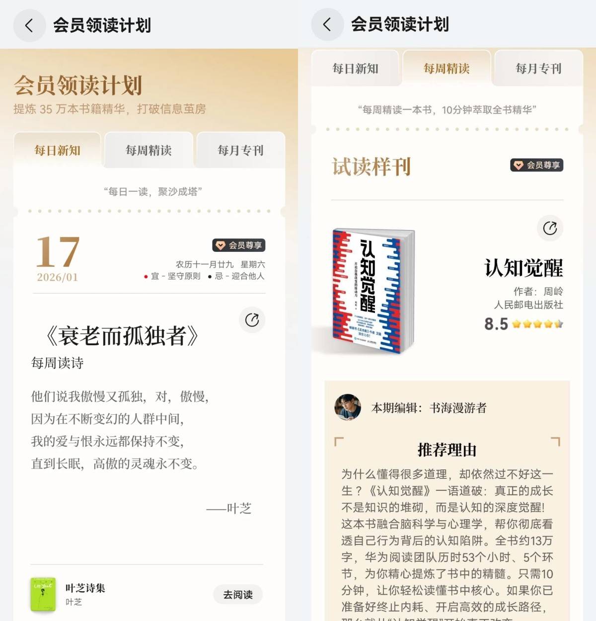 会员领读计划最打动我的,是它把阅读这件事变得“轻量”却“深度”。它不是简单地把书推给你,而是从35万本海量藏书中,精心提炼出精华。