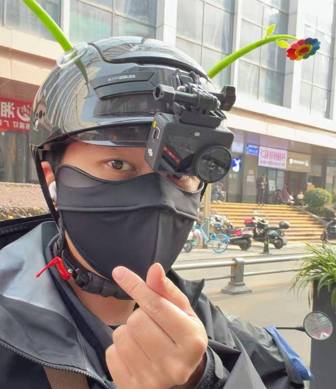 这份快乐来自他头盔上的两朵小花,被风一吹就会晃来晃去,让人看了心生喜悦;来自他对路人随口的一句夸赞,“你摆的银杏真好看,但是没有你人好看”;来自他日常记录中透出的微光,照亮了一座城市,也温暖了观看视频的每一个人。