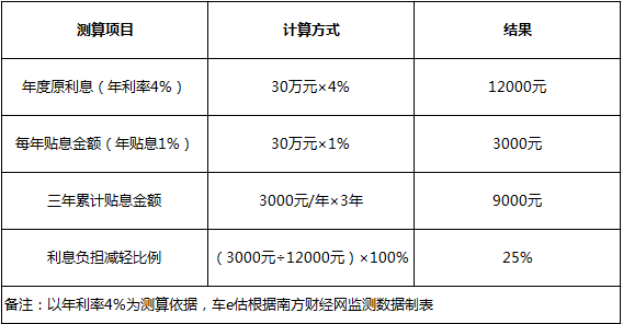 据2026年1月南方财经网监测数据,个人消费贷(含汽车贷款)年化利率普遍在3%-6%区间,银行系车贷多为3%-4.5%,持牌汽车金融公司对优质客户利率围绕4%-6%波动,取区间中间值4%作为测算基准,能客观反映多数消费者实际贷款成本。以一笔30万元、期限3年、年利率4%的汽车贷款为例,政策补贴后消费者每年可节省3000元利息,三年累计节省9000元,相当于利息负担减轻25%。