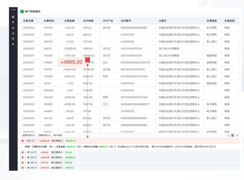 (3)逻辑审查是通过流水内部的逻辑关系来验证其真实性,包括余额连续性、交易顺序、节假日交易等是否合理。逻辑审查的内容主要包括:余额计算是否正确、交易日期是否连续、节假日是否有异常交易、交易频率与金额是否符合资金流转规律等。