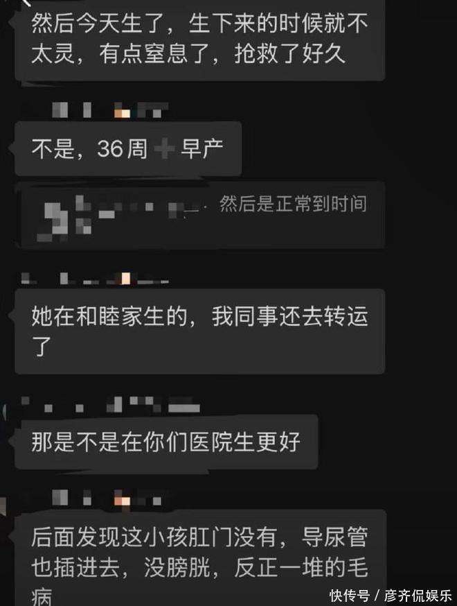 12月23日深夜,社交平台上突然传出了一则匿名聊天截图,内容指向刚刚生产的阚清子。爆料者自称是医院内部人员,提供的细节看起来相当具体。内容称阚清子在一所私立医院生下了一个女婴,孩子是36周的早产儿,天生有多种畸形,甚至没有膀胱和肛门。更可怕的是,爆料称新生儿出生后呼吸微弱,经过紧急抢救后,最终在凌晨4点多去世。聊天记录中还提到了无法插入导尿管等医疗细节,内容令人感到十分不安。