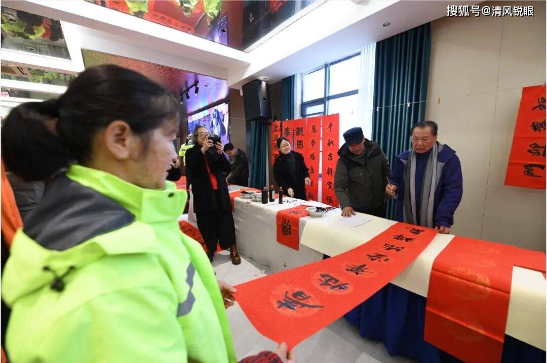 “往年都买印刷的春联,今年拿到书法家亲手书写的,感到特别有纪念意义!”环卫工人祝晓玲手捧墨香未散的春联,脸上洋溢着幸福的笑容。