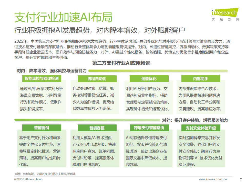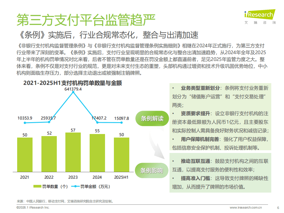 中国第三方支付行业已进入规范成熟阶段,监管政策持续完善,《非银行支付机构监督管理条例》等法规推动行业合规常态化与整合出清加速。行业整体交易规模平稳增长,2024年第三方综合支付交易规模达560.2万亿元,其中个人支付渗透率接近天花板,增速放缓,而企业支付凭借数字化转型与跨境电商发展展现更强增长韧性,2024年规模达203.7万亿元。细分市场中,个人移动支付规模略有下调,商业支付稳步增长且呈现线上化趋势;企业支付领域,线下收单市场趋于饱和,产业支付稳定增长,跨境支付成为重要增长点,2025年规模预计达3.3万亿元。行业积极拥抱AI技术,通过智能风控、流程自动化等实现降本增效,同时拓展智能营销、跨境支付优化等服务。竞争格局上,个人支付市场由支付宝、微信支付主导,企业支付市场则呈现多元化竞争,头部机构向“支付+”一体化解决方案升级。未来,无感化支付、数字人民币推广、稳定币赋能跨境支付成为主要趋势,行业将持续深化技术融合与场景拓展,推动支付服务向更高效、智能、多元方向发展。电子特气作为电子工业关键材料,分为大宗气体与特种气体,广泛应用于集成电路等领域,全球市场由欧美日巨头主导,国内企业正加速技术突破,部分产品实现进口替代,但高端产品仍依赖进口,行业呈现国产提升与部分产品产能过剩并存的态势。