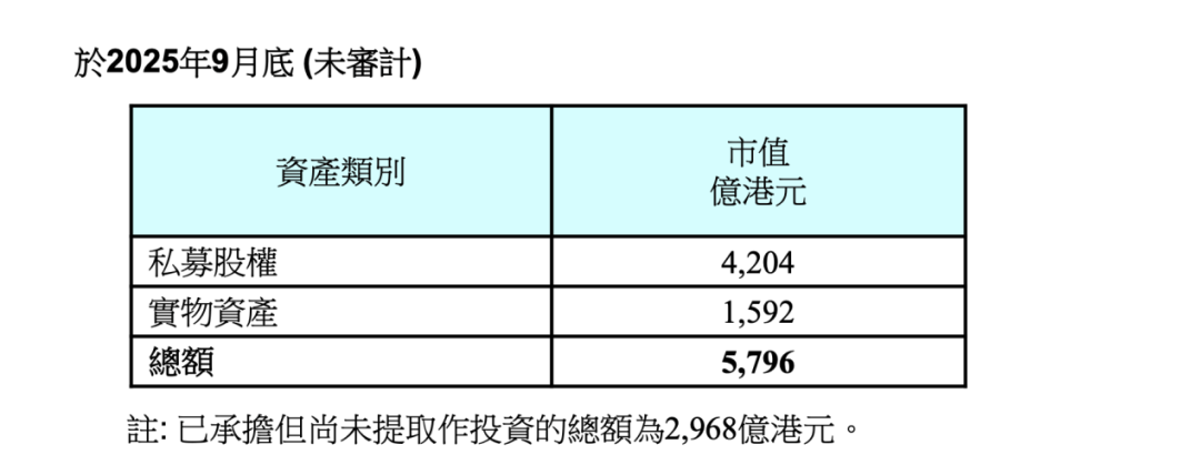 数据显示,截至2025年9月底,外汇基金持有私募股权资产4204亿港元,持有实物资产1592亿港元。
