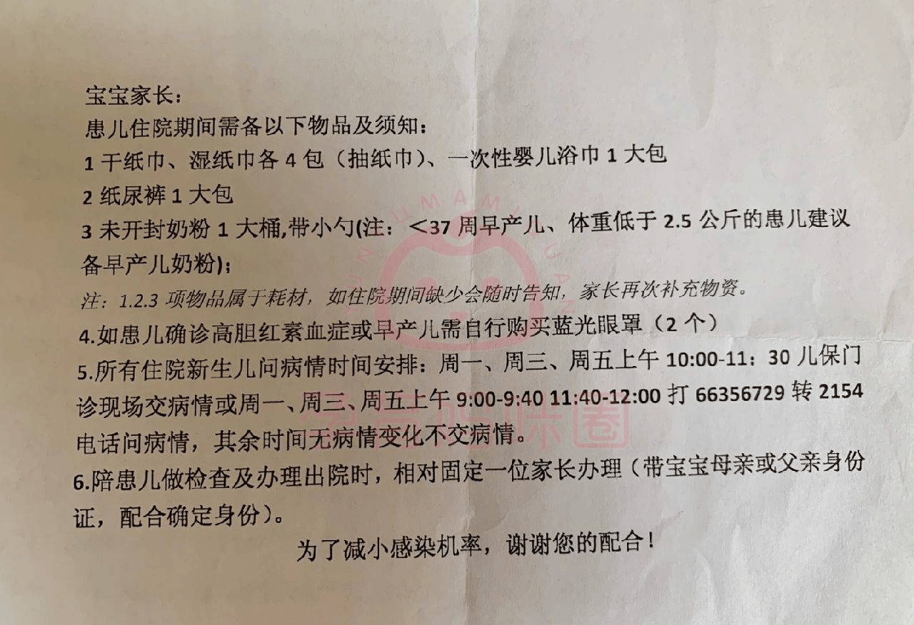 住院物品-宝宝篇