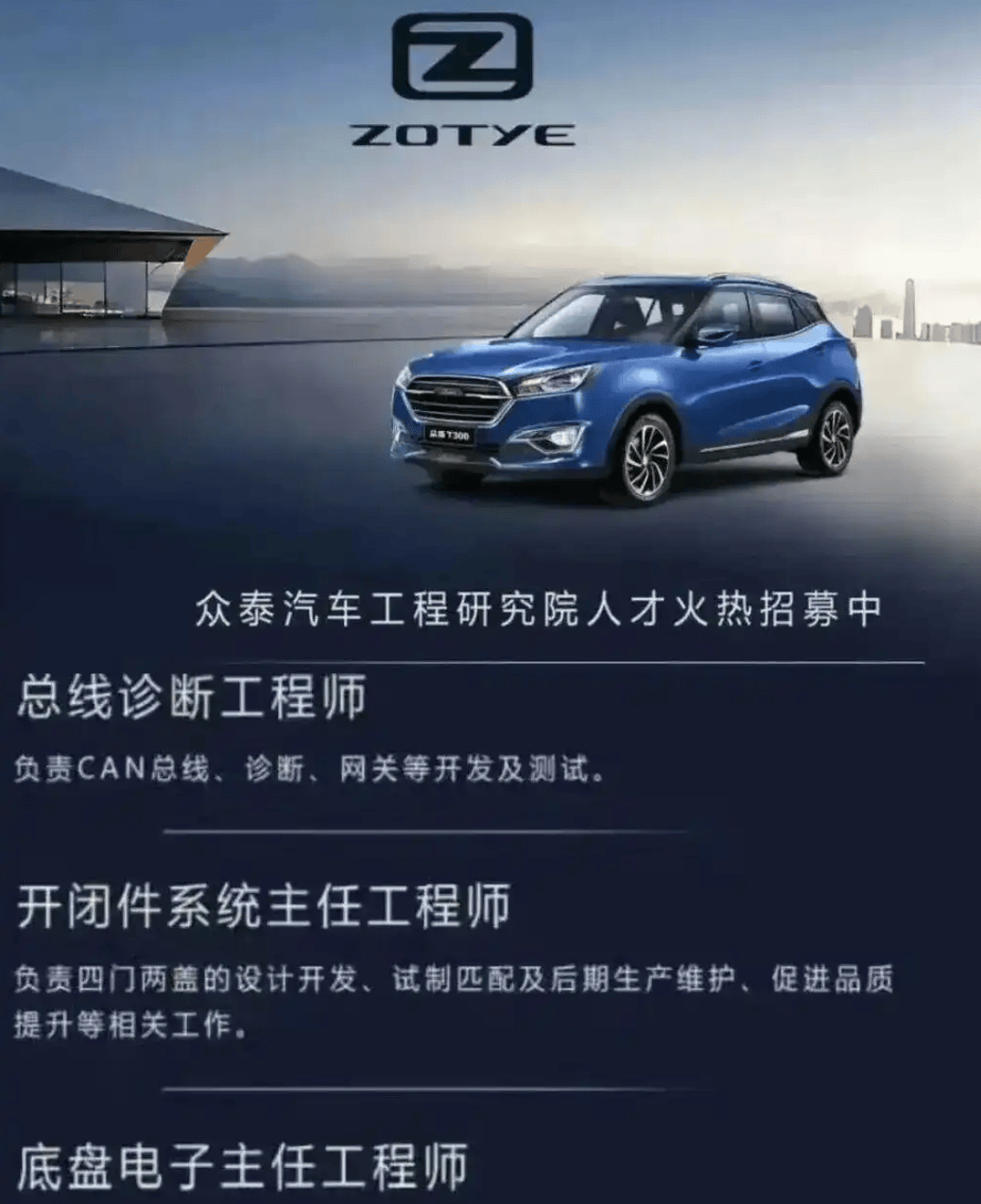 众泰汽车重新回归的消息这几年传出了好几次,但都没了下文。就在近期,众泰汽车工程研究院发布了一则“人才火热招募中”的招聘信息,涉及智能驾驶、动力电池等接近50个岗位,内部人士透露,目前约20%岗位已有意向人选,人才储备工作有序推进。难道说众泰汽车这次真的要复活了?