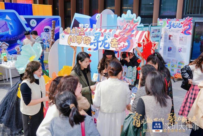 学校趣创市集是爆款产品聚集地。深圳科学高中龙岗五和学校的“每周半天计划”课程案例、龙城小学三十周年献礼——《寻龙记》课程设计、龙岗区科创实验学校(集团)横岗中心学校科创教育成长手册……24个市集摊位前人流络绎不绝。参与者既是手持虚拟币的“买家”,也是深度交流的“共创者”。热烈的问答与探讨此起彼伏,让教育智慧在交易与对话中真正流动起来。