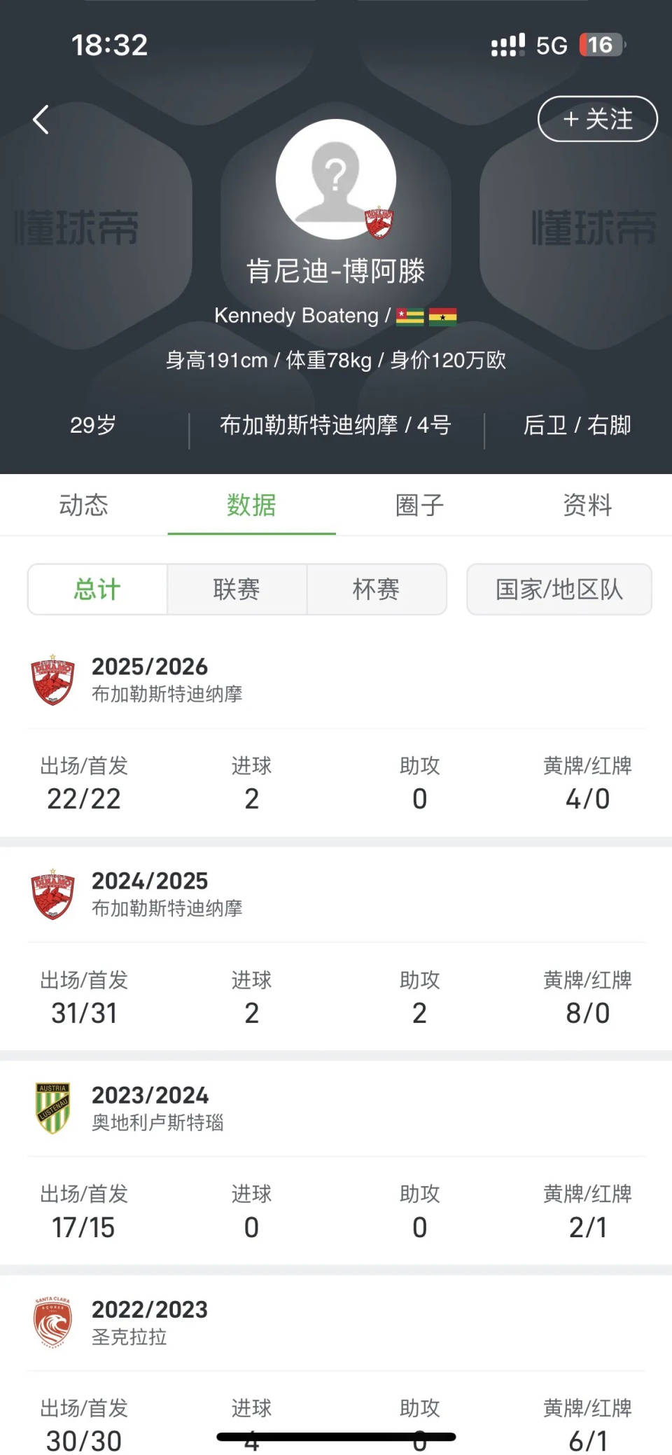 而布希里也基本被球队放弃,泰山队将引援目光聚焦在了多哥中卫肯尼迪·博阿滕身上,博阿滕今年29岁,正值职业黄金期,身高达到191cm,体型强壮,正面防守能力极为出色,是典型的中后卫“好苗子”,2023赛季,博阿滕效力于罗马尼亚甲级联赛布加勒斯特迪纳摩,他展现出了惊人的稳定性,20场比赛全部首发且打满全场,堪称球队的后防中坚。他踢球风格彪悍,在防守时犹如一堵移动的城墙,让对手难以逾越;在进攻端,他也能凭借出色的身体素质和头球能力,为球队创造机会。他甚至自称“野兽”,可见其对自身实力的自信。
