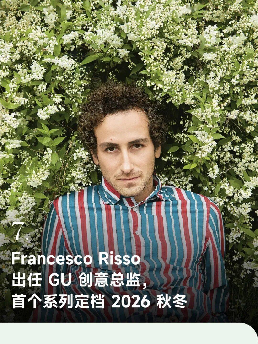 Fast Retailing 集团于 1 月 8 日宣布, Francesco Risso 已正式出任旗下品牌 GU 创意总监。他为 GU 打造的首个系列计划于 2026 年秋冬季发布,标志着品牌在设计与创意层面的新一步布局。根据 Fast Retailing 披露的信息,Risso 将全面负责 GU 的创意方向与设计表达。此次任命被视为 GU 在持续拓展全球影响力、强化品牌时尚属性背景下的重要人事调整。首个系列的发布节点设定在 2026 年秋冬,显示品牌对中长期产品规划的清晰节奏。