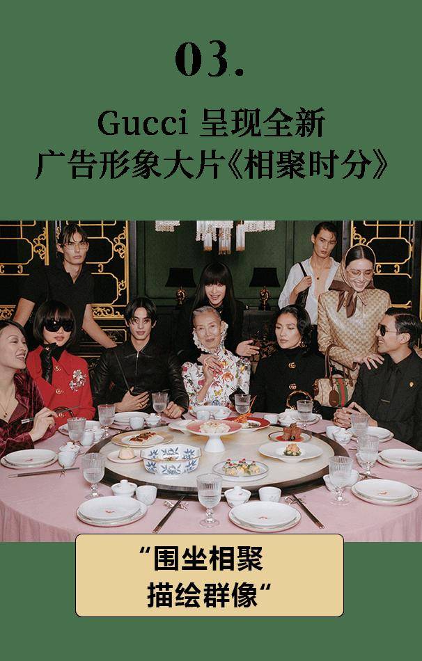 Gucci古驰推出由倪妮、宋威龙、Davika Hoorne 和 Chantavit Dhanasevi 演绎的全新广告形象大片《相聚时分》。倾情颂扬于至亲挚友间寻获的归属感。本次出镜阵容包括品牌代言人倪妮、品牌大使宋威龙,以及品牌大使 Davika Hoorne 与其丈夫 Chantavit Dhanasevi,皆身着古驰《La Famiglia》系列。